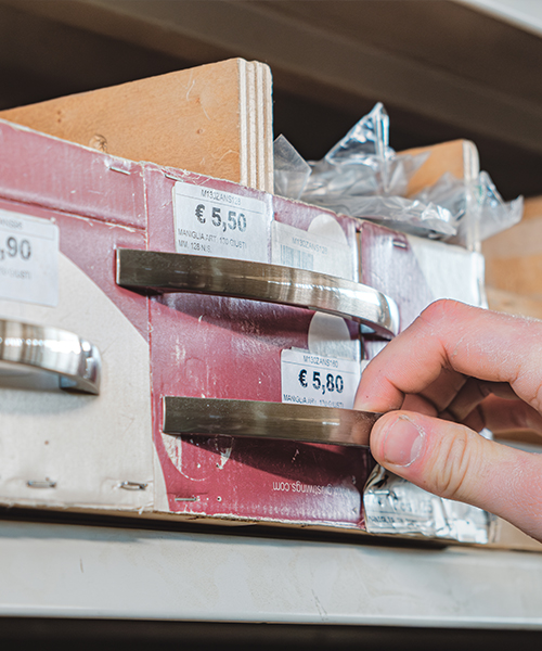 Il nostro reparto ferramenta è un paradiso per chi deve montare, riparare o rifinire: viti, piastre, utensileria, serrature, maniglie, pomoli, cornici e accessori tende, tutto a portata di mano. Non solo trovi ogni tipo di pezzo, ma hai anche qualcuno che ti aiuta a capire quale fa al caso tuo.